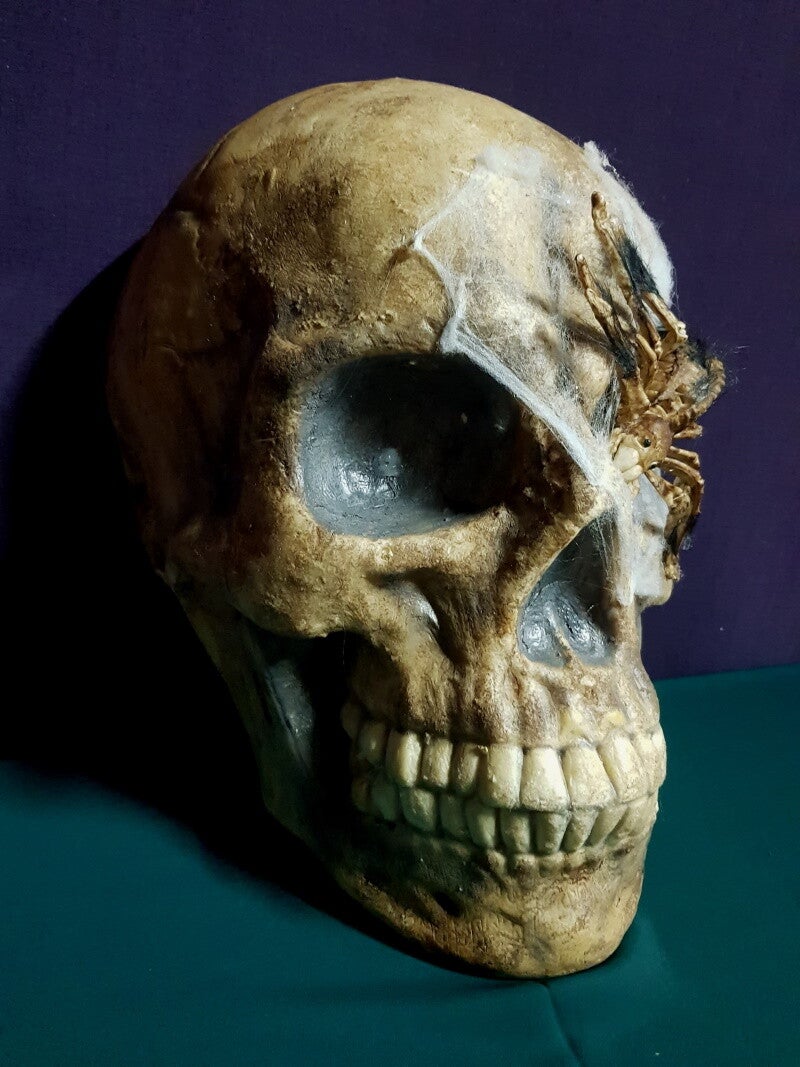 Sehr großer Totenkopf mit Spinne im Auge