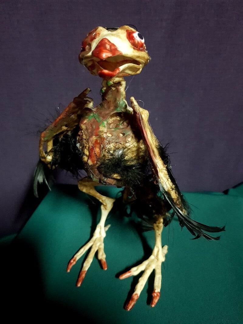 Zombie Vogel. Sehr cool mit echten Federn gemacht.