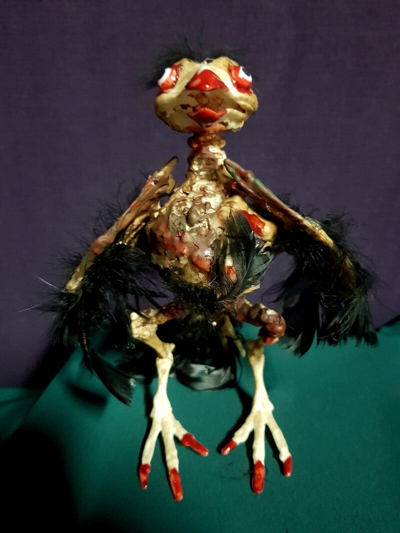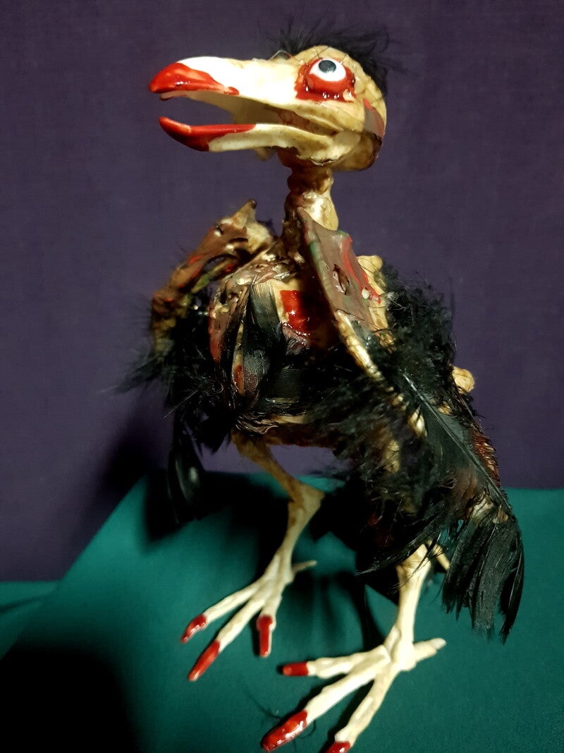 Zombie Vogel. Sehr cool mit echten Federn gemacht.