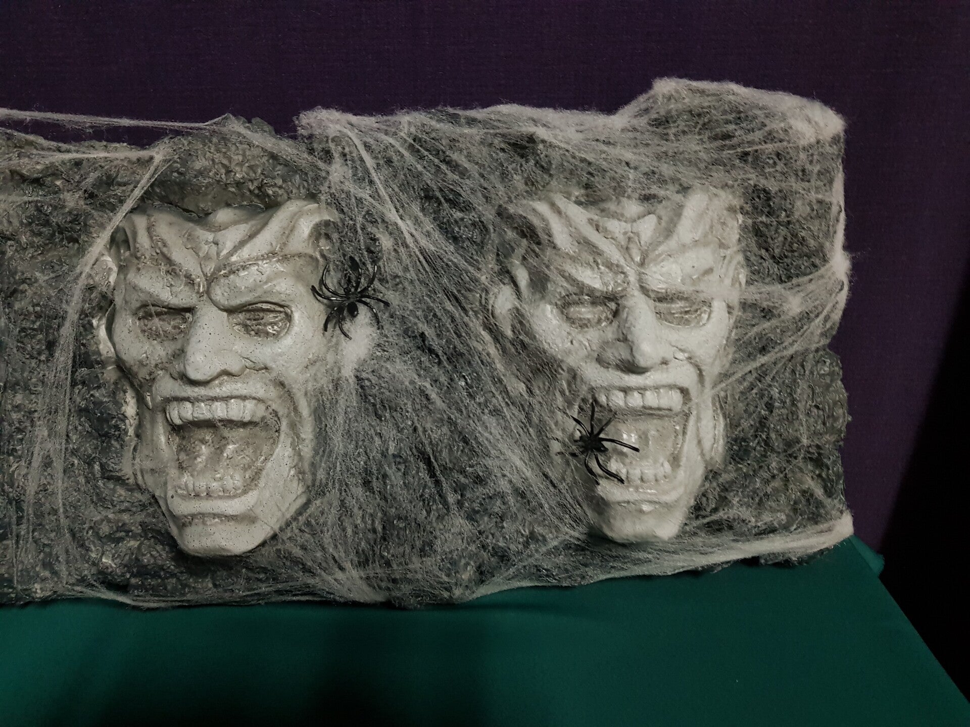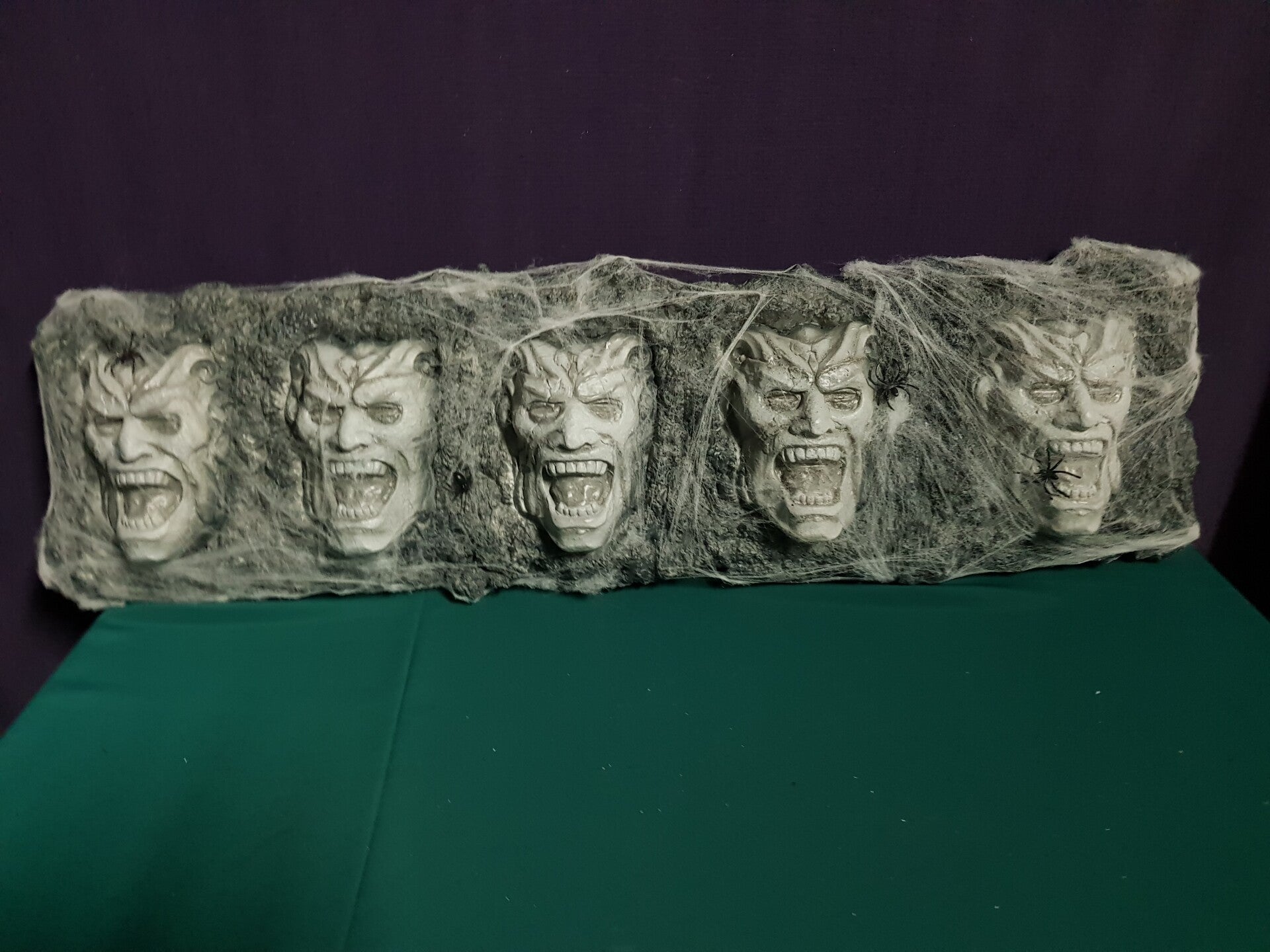 Sehr schöne Wanddeko. 5 Gargyle Platte eingehüllt in Spinnenweben.